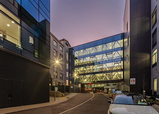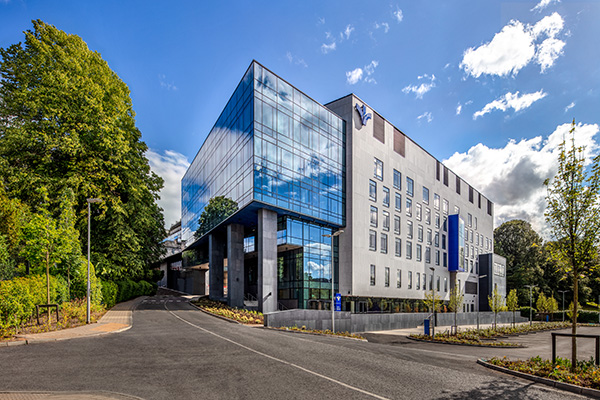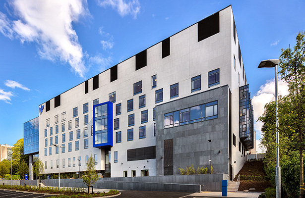 An integrated landscaping scheme addresses the amenity/landscape zoning adjacent to the River Lee to the north and includes a riverside walk. A glazed foyer links the primary horizontal and vertical circulation routes, and a series of link bridges connect the existing campus to the new block.