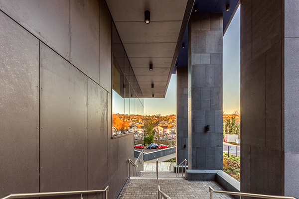 A key requirement of the brief was to connect to the existing 25,000m2 hospital accommodation horizontally to the new expansion whilst maintaining the campus through road which meanders down the steeply sloping site. The clear definition and separation of public and clinical circulation is central to the creation of a contemporary healthcare building for patients, visitors and staff alike. The resulting healthcare development “North Block Expansion” is set into the sloped landscape to the north of the site overlooking the river Lee.